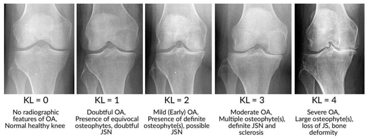 - El grado de artrosis en las radiografías se clasifica frecuentemente mediante la escala de Kellgren y Lawrence.