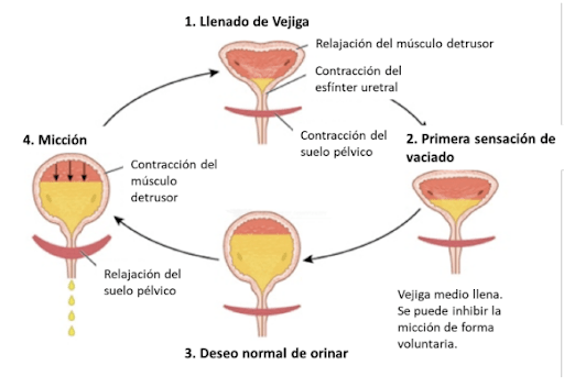 El control adecuado de la micción tiene varios personajes implicados: la vejiga, el músculo detrusor, los esfínteres y el sistema nervioso. Por lo tanto, la micción es un proceso neurofisiológico y su objetivo es almacenar y vaciar la vejiga de manera eficaz y segura.