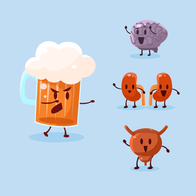 El alcohol interfiere con la vasopresina, la hormona antidiurética de la que hablábamos antes, que disminuye la producción de orina. El alcohol la suprime, por lo que los riñones excretan más agua de lo habitual generando más orina y más ganas de ir al baño.