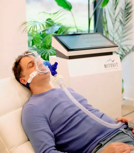 Herramienta avanzada que permite personalizar y optimizar cada sesión de hipoxia intermitente en tiempo real. A través de su software, MITOVIT® monitoriza continuamente tus signos vitales y las respuestas fisiológicas de tu cuerpo, como la saturación de oxígeno en sangre, la frecuencia cardíaca y la respiración.