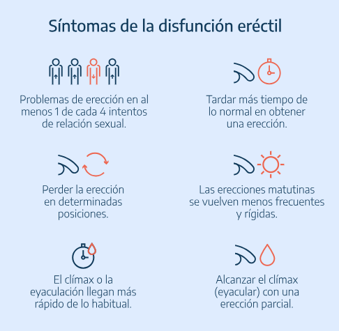 - Poder tener una erección, pero no por el tiempo necesario para poder tener relaciones sexuales.